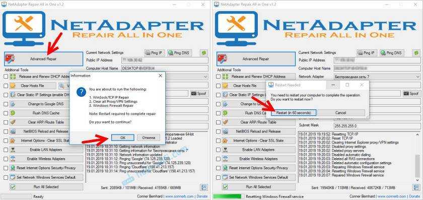 Как починить подключение к интернету с помощью NetAdapter Repair?