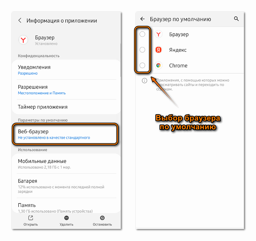 Здесь будет доступен список всех веб-обозревателей, которые установлены на вашем Андроид-телефоне. Для того чтобы поменять браузер по умолчанию просто выберите один из предложенных вариантов.
