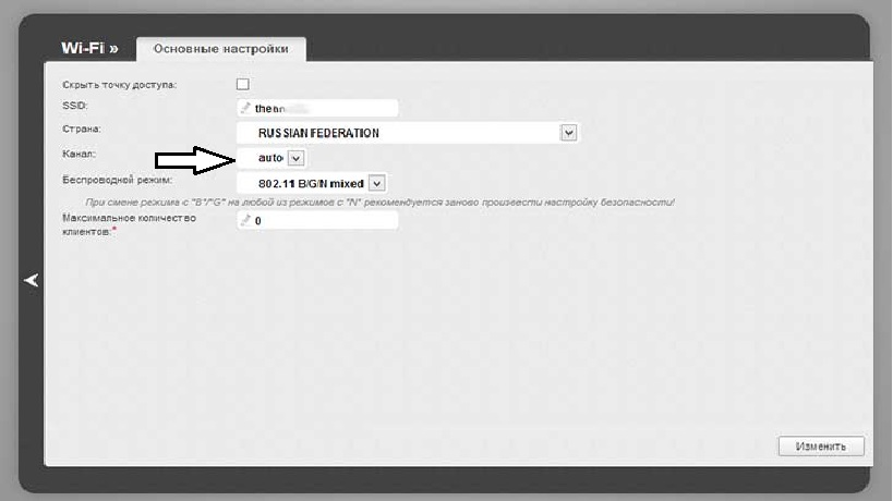 D-Link. Войдите в категорию WiFi и выберите Основные настройки. Справа отыщите пункт Канал, установите нужный параметр и жмите Применить.
