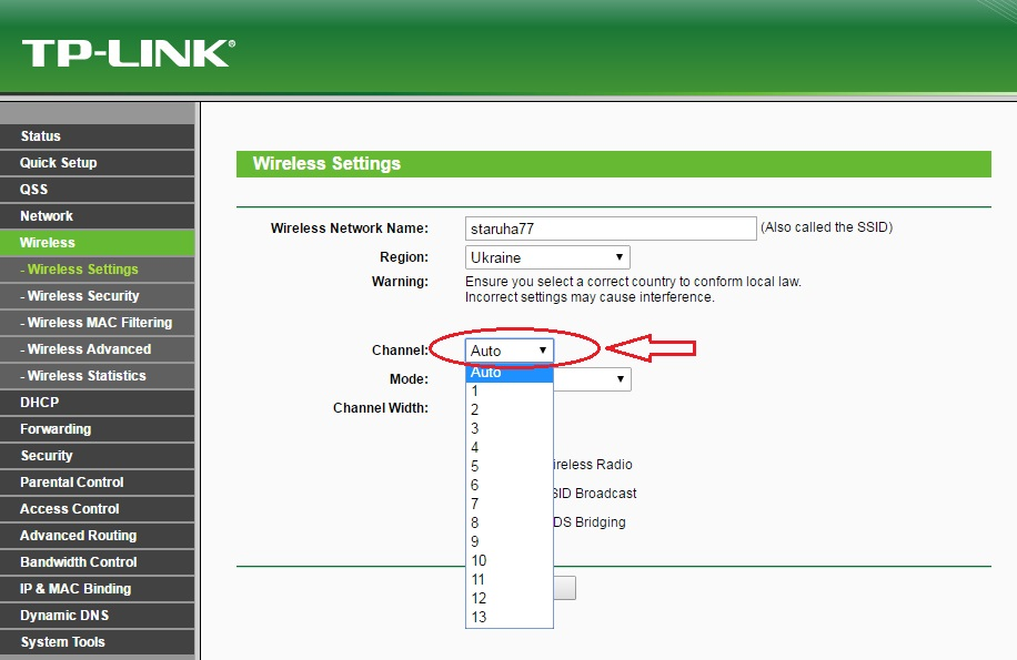 Если вы используете роутер ТП-Линк, то изменение канала будет осуществляться таким образом: