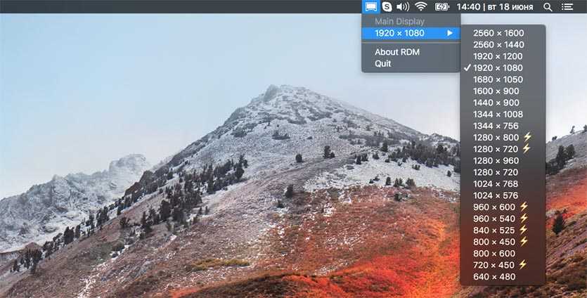 После ее установки в строке меню появится специальный пункт для быстрой смены разрешения экрана.