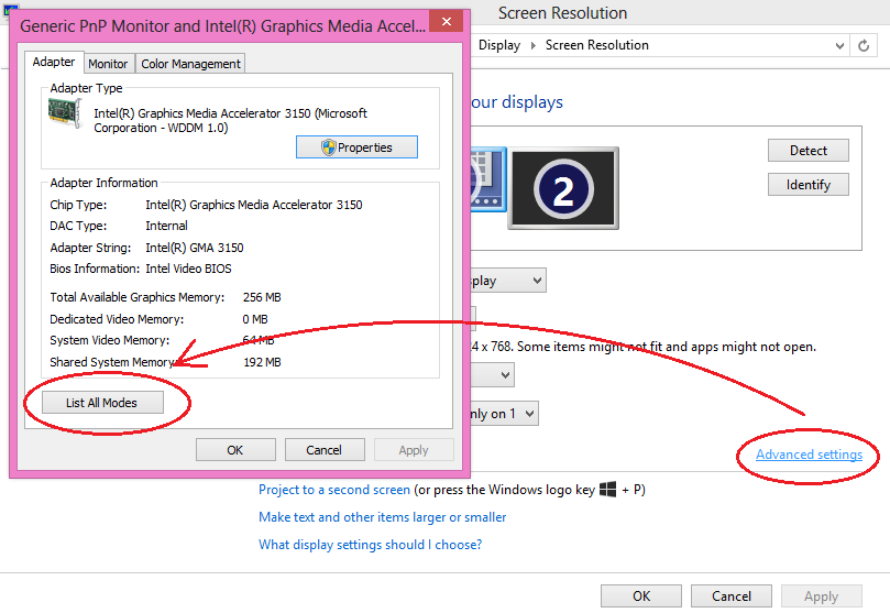 Выберите вариант Дополнительные параметры Откроется окно с 3 вкладками (обычно), выберите Список Всех Режимов под адаптер tab.
