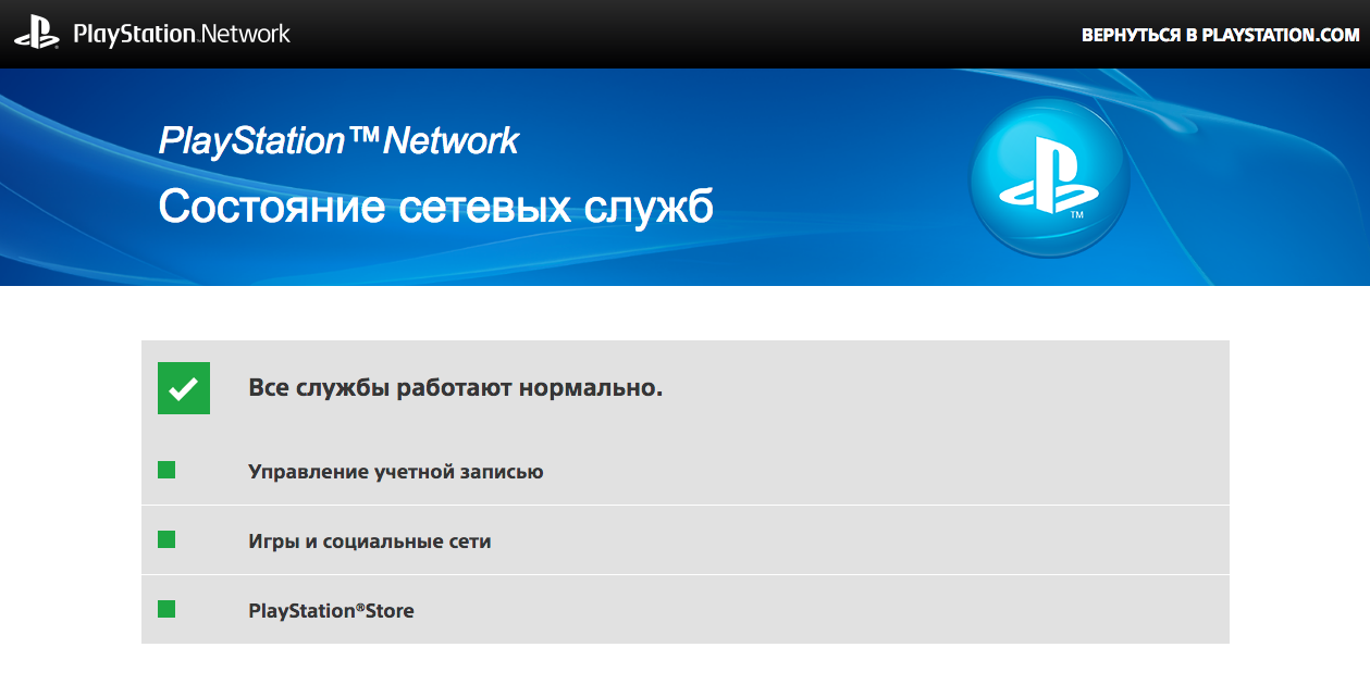- PlayStation Network или игровые серверы могут быть временно недоступны. Убедитесь, что сервисы PlayStation Network и игровые серверы доступны.