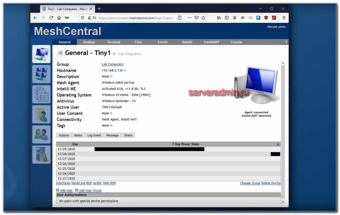 Управление удаленными хостами производится через браузер. Это отличает MeshCentral от многих похожих систем. Из бесплатных мне вообще подобные неизвестны.