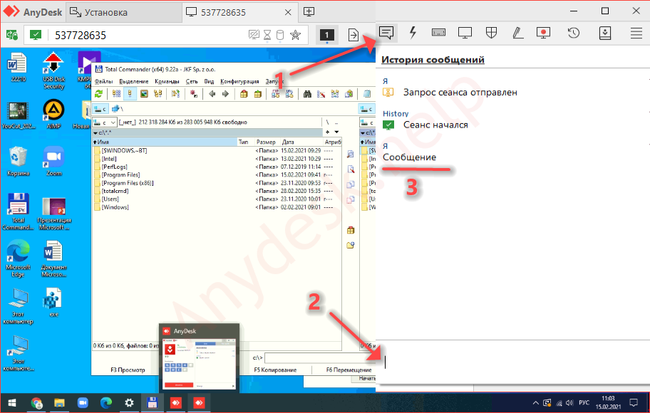 Аналогично каталоги с файлами в AnyDesk копируют на доминантный компьютер.