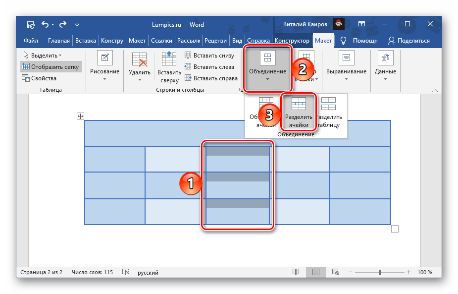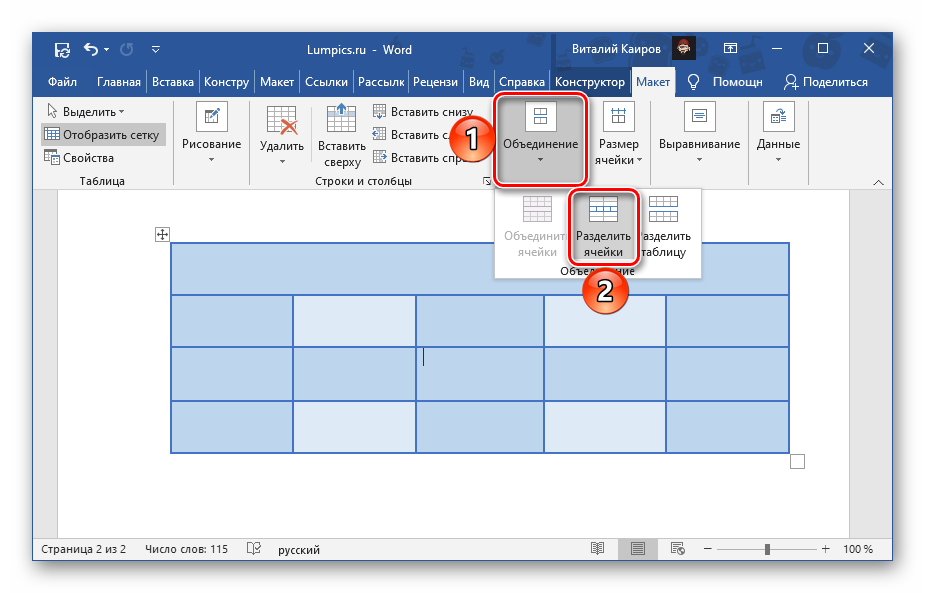 Выполните те же действия, что и на последнем шаге предыдущей инструкции, то есть укажите нужное число столбцов и/или строк, на которые требуется разделить выбранный элемент, после чего кликните «ОК».