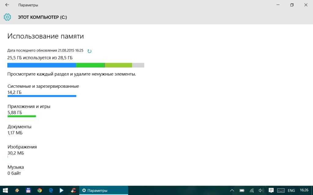 На системном диске необходимо иметь как минимум 15% свободного места для временных файлов и загрузки обновлений.