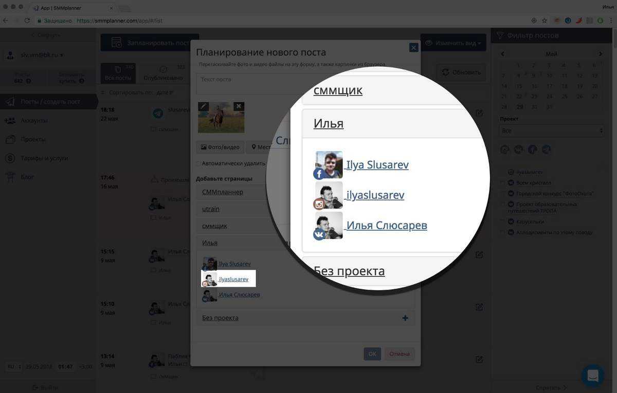 Выберите нужную страницу для публикации, отметьте время и жмите «Ок». SMMplanner опубликует фото в то время, которое вы укажете.