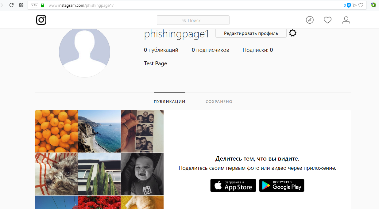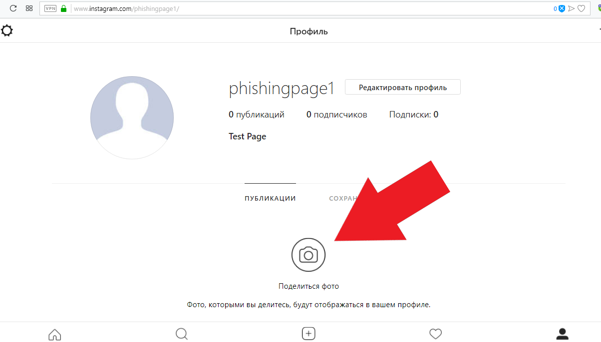 - Вы попадете в окно своего профиля. В десктопной версии вам будет предложено опубликовать фото с помощью мобильных приложений для iOS или Android;
