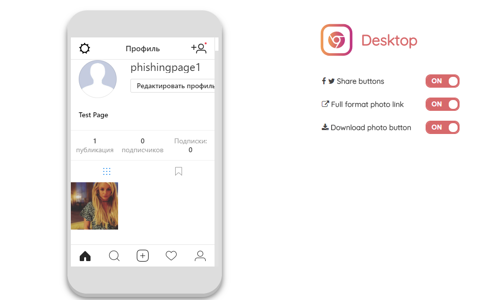 Скачать с Инстаграм (+ Загрузить фото) – это расширение для Google Chrome. Оно добавляет на сайт кнопки для загрузки и скачивания фото.