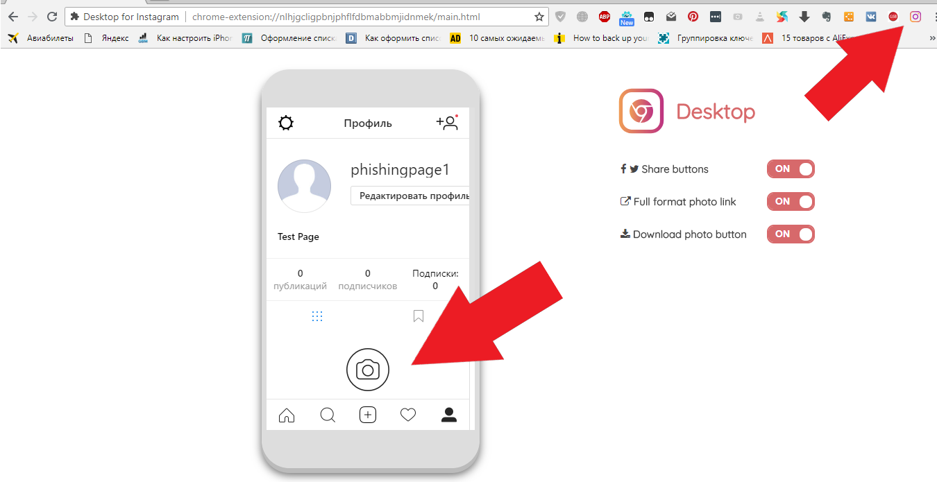 Для публикации своих фото нужно загрузить официальное расширение Instagram.