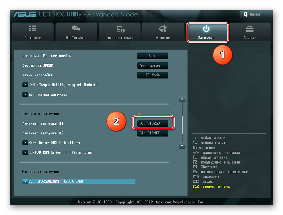 Перезагружаем ПК и входим в BIOS посредством нажатия клавиши Delete или Esc после прохождения первоначального теста. В зависимости от версии и марки материнской платы возможны и иные варианты: F2, Ctrl + F2, F8 и другие. Здесь меняем приоритет загрузки на нужный нам. Подтверждаем изменения в настройках и выходим из прошивки.
