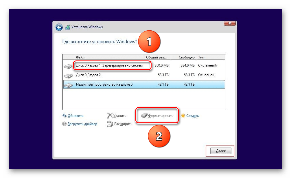 На следующей странице выбираем раздел винчестера и нажимаем «Форматировать».