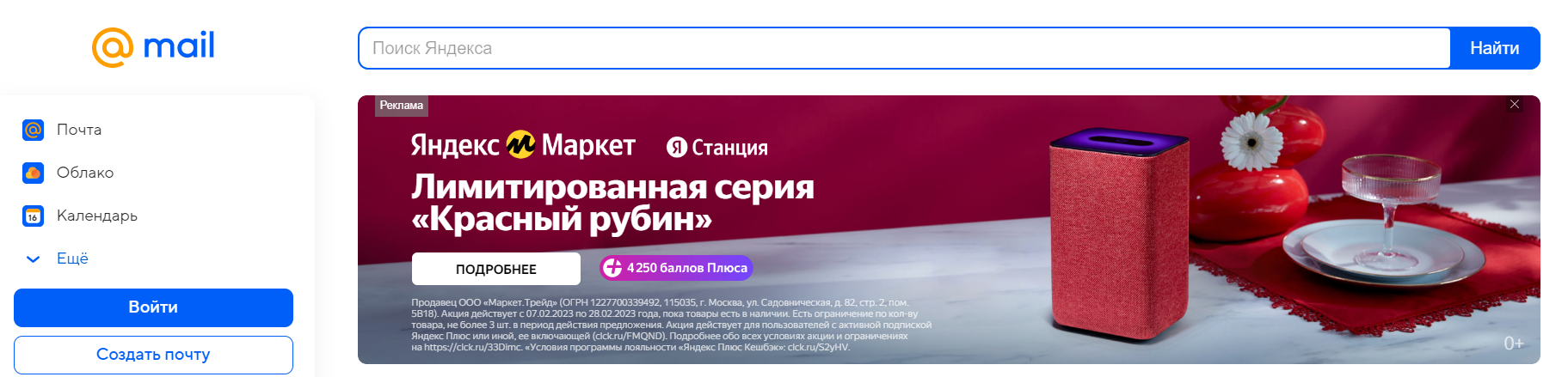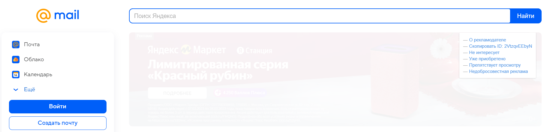 Места размещения рекламы в интерфейсе Яндекс Почты