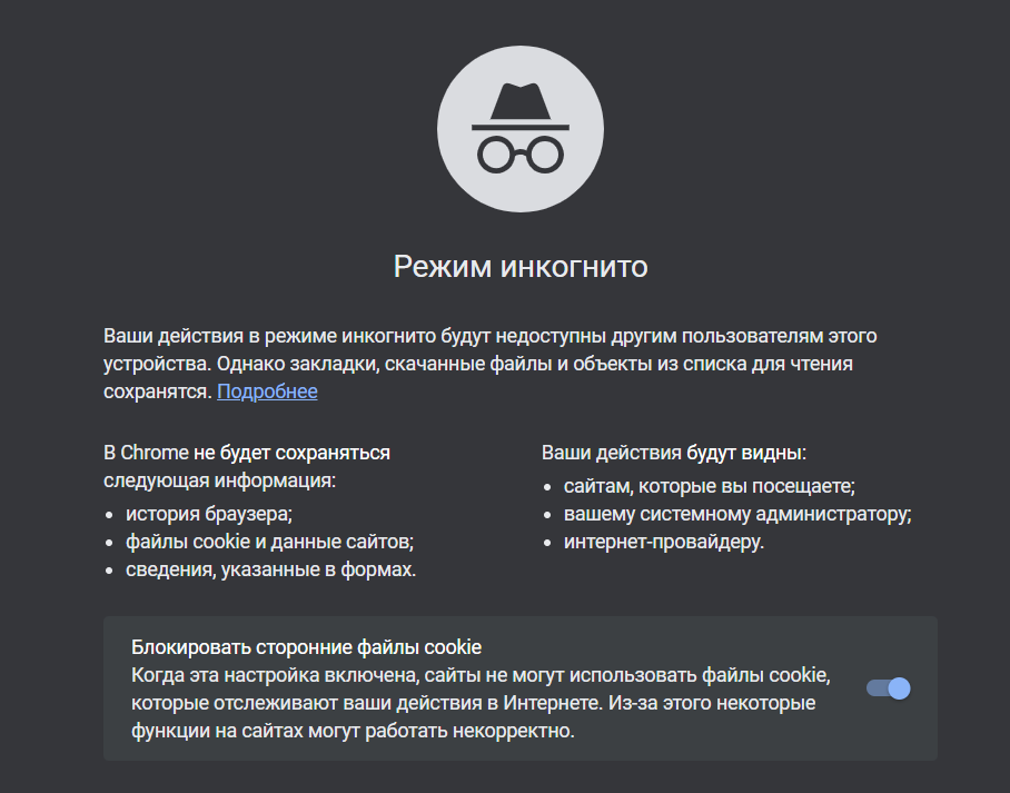 Режим инкогнито в Google Chrome