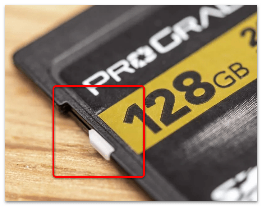 Бывает и так, что после подключения отформатированного накопителя к другим устройствам он сообщает, что защищён от записи либо данные на него просто не копируются. Это означает две вещи: режим read-only активен штатно или контроллер карты включил его из-за сбоя. Первый вариант возможен только при использовании адаптеров microSD-SD, множество из которых оборудовано специальным переключателем защиты на одной из граней, и для устранения проблемы достаточно просто перевести его в верхнее положение.