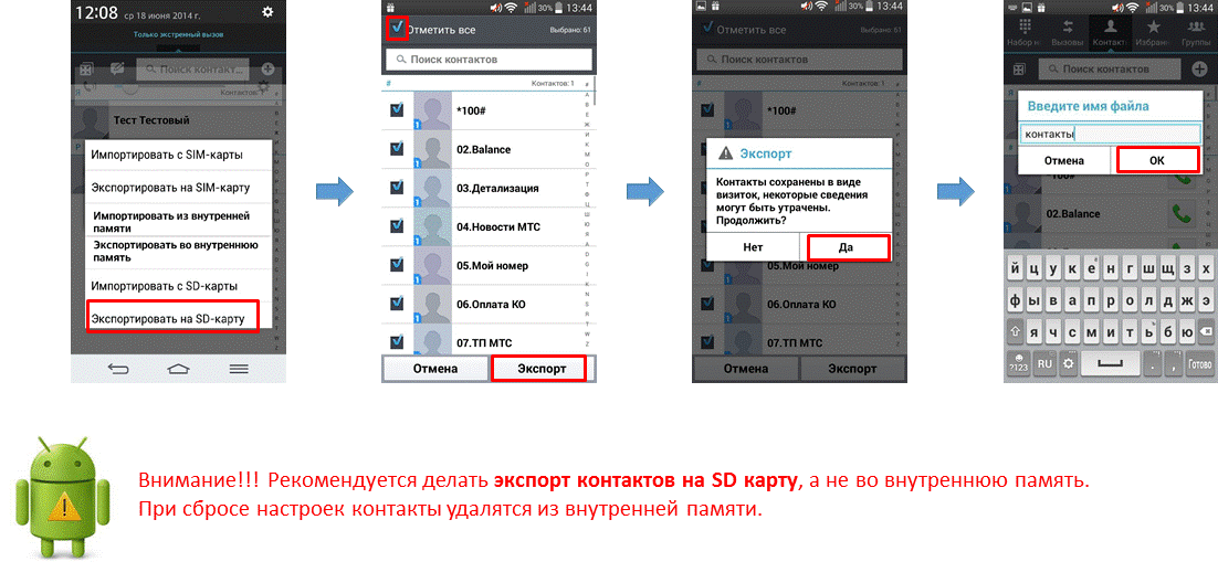 Далее будет дана возможность перенести информацию из внутренней памяти на подготовленную карту.