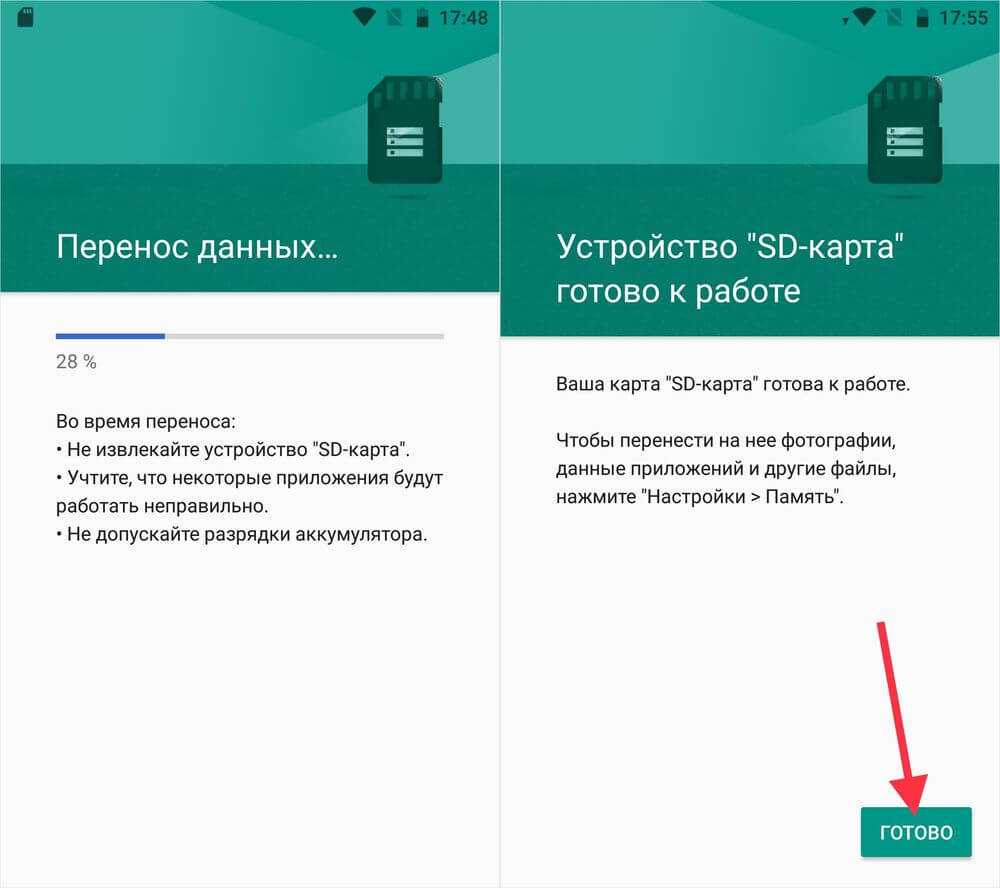Процесс переноса данных займет некоторое время. В конце появится сообщение, что SD карта готова к работе.