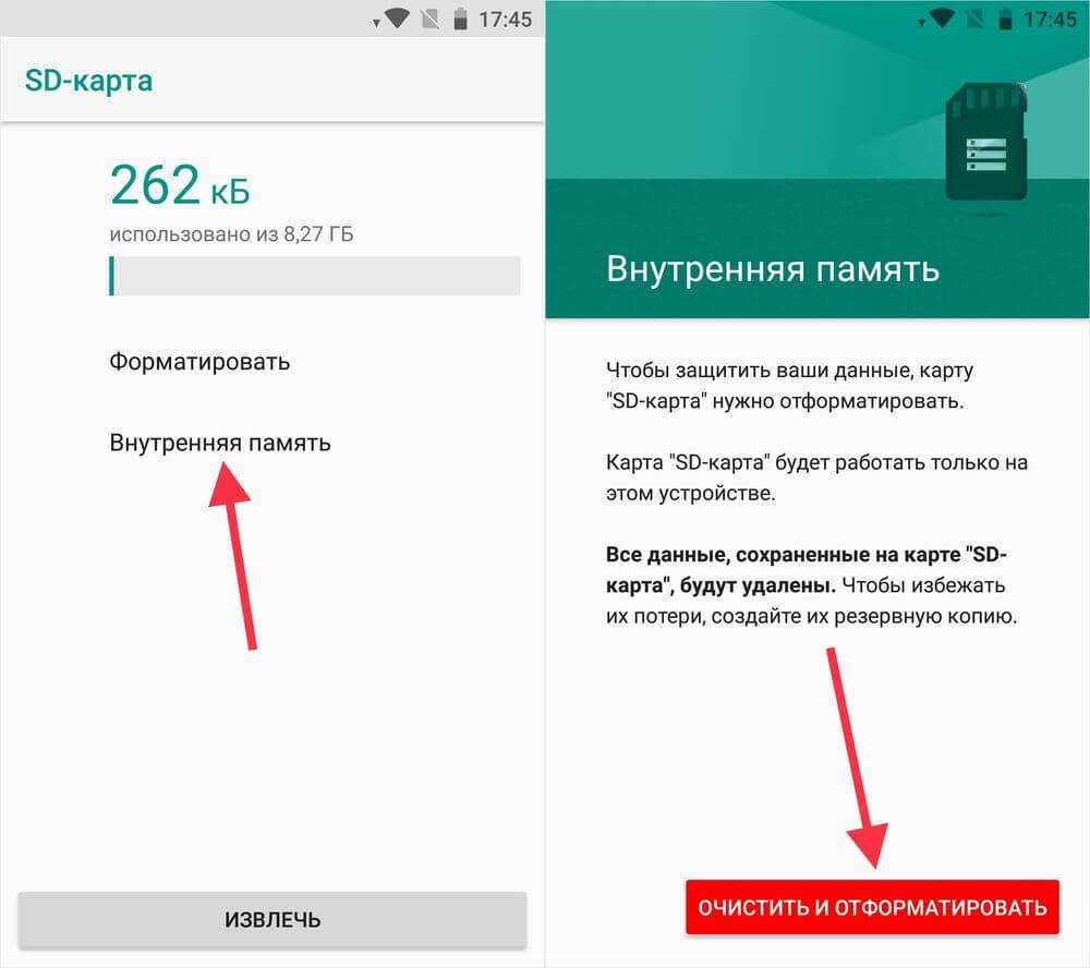 Итак, первый вариант подразумевает использование штатного функционала Android. Возможность присутствует не на всех прошивках, поэтому проверьте наличие данной опции на вашем девайсе. Метод заключается в форматировании карты памяти следующим образом: