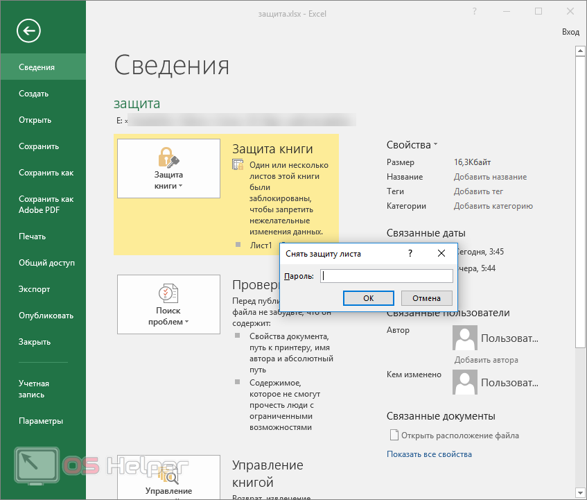 После установки защиты файл будет открыт только после введения правильного пароля. Для остальных желающих ознакомиться с защищённой информацией попытка будет безуспешной.