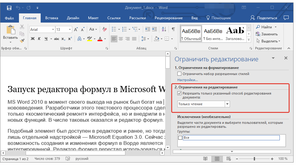 Достаточно часто пользователь сталкивается с необходимостью, наоборот, запретить какие-либо изменения в созданном документе