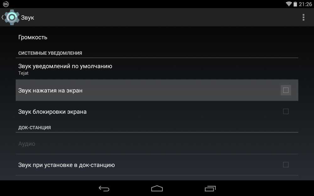 Также нужно выключить отклик на прикосновение к дисплею. Чтобы сделать это, в настройках выбирают раздел «Звук» и деактивируют соответствующую опцию.