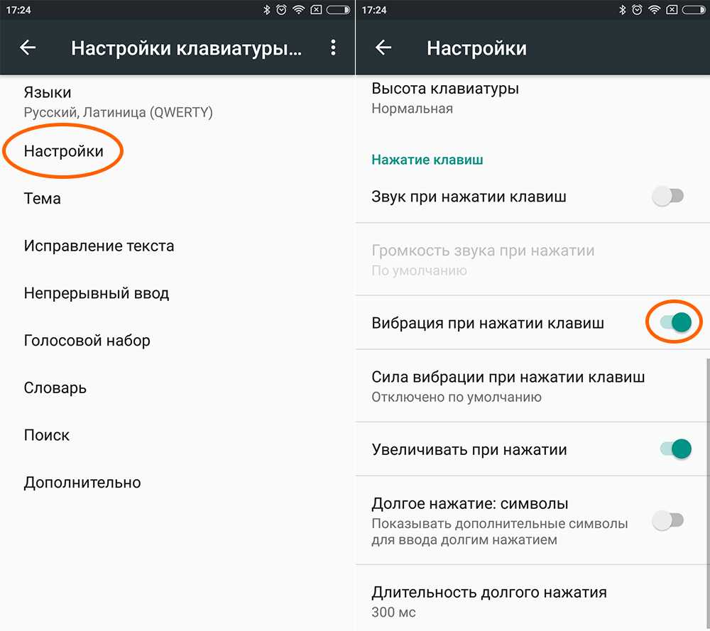 Важно рассказать и о возможности управления вибрацией при вводе с клавиатуры – её легко увеличить, уменьшить или вовсе убрать: