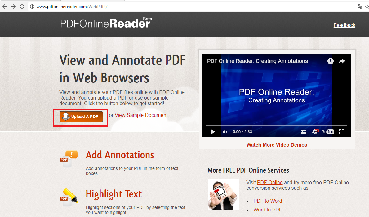 Следующий хороший сайт для отображения документов PDF — Pdf Online Reader. Сервис отличается хорошо продуманной панелью инструментов и широким функционалом.
