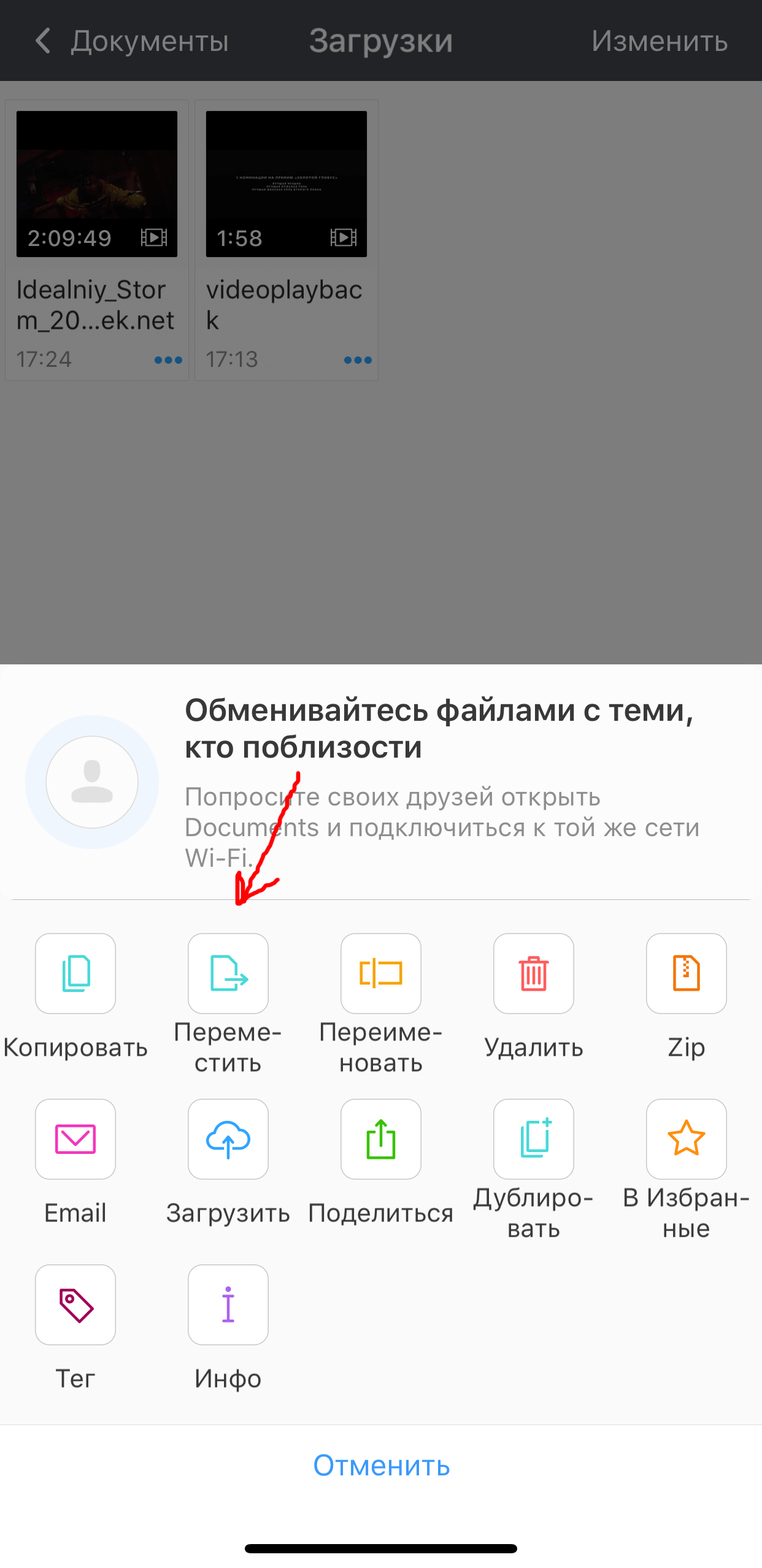 Скидываем видео на iPhone прямо в приложение