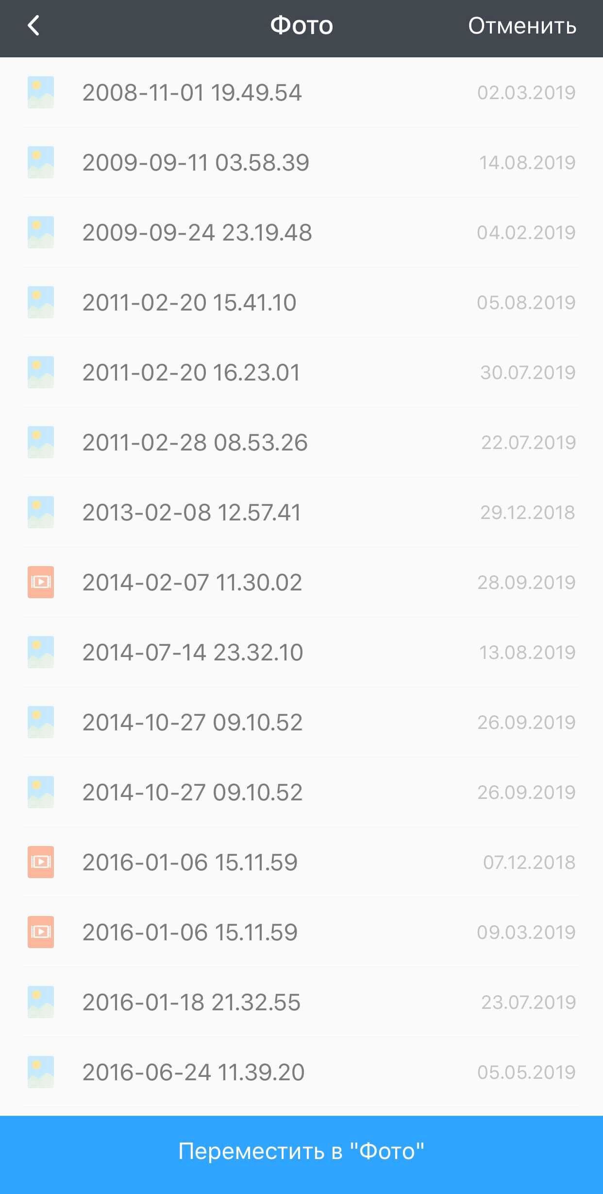 - Здесь вы увидите таблицу со всеми видео, которые находятся на мобильном устройстве (снятые на камеру, загруженные ранее, синхронизированные с iCloud и так далее).