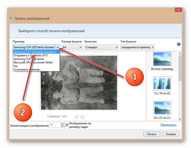 При первой печати на новом сетевом принтере не забудьте выбрать его из выпадающего списка в настройках.