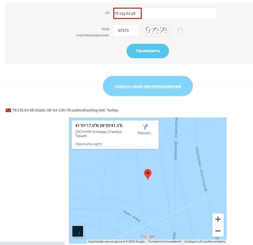 Можно также перепроверить этот же IP на других подобных ресурсах: