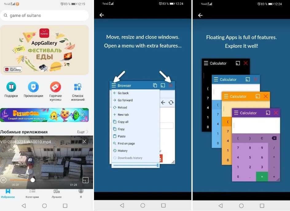 Если ни один из основных способов вам не показался удобным, воспользуйтесь программой Floating Apps Free. Она доступна для бесплатной загрузки через Google Play и позволяет на 100% использовать мультиоконный режим.