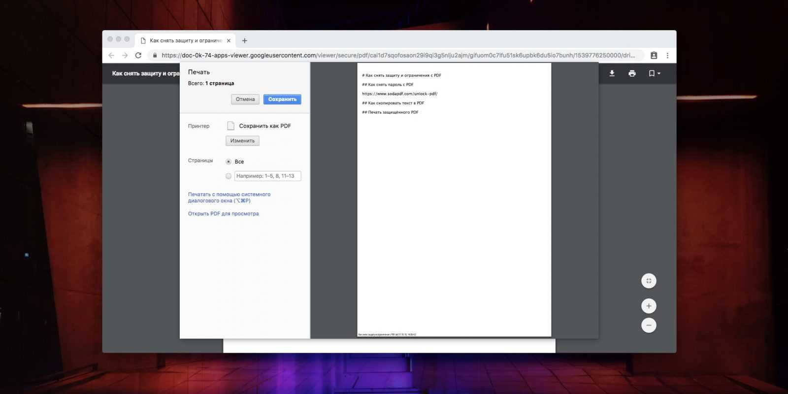 Открыть PDF без пароля на Maс: