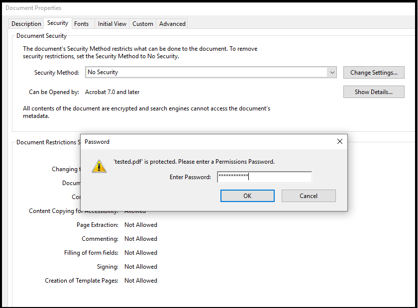 снять ограничение на печать в файле PDF от Adobe Acrobat Pro DC