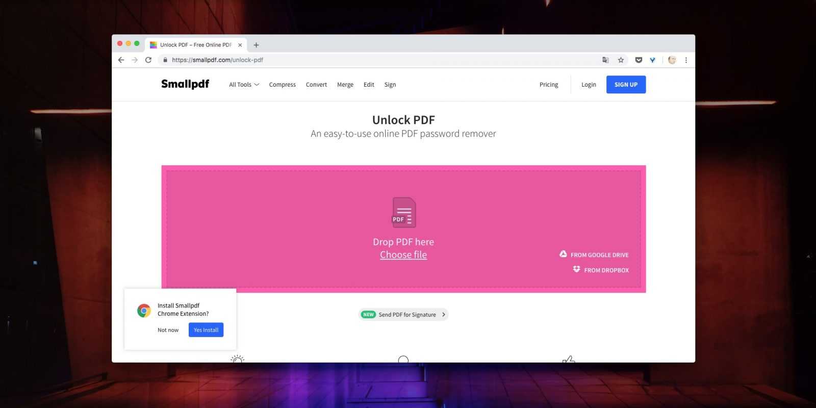 Если у вас на компьютере не имеется программ для работы с PDF, то их устанавливать и не потребуется, поскольку для снятия защиты с документа можно обратиться к помощи онлайн-сервиса. Следует отметить, что онлайн-сервис Smallpdf является платным, но первые две попытки снять защиту с документа вам будут доступны абсолютно бесплатно.