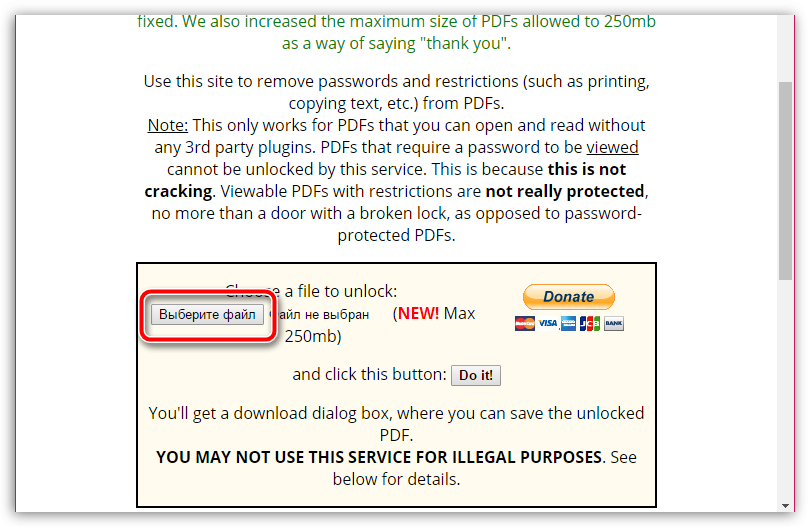 Третий способ как снять защиту и разблокировать файл PDF онлайн