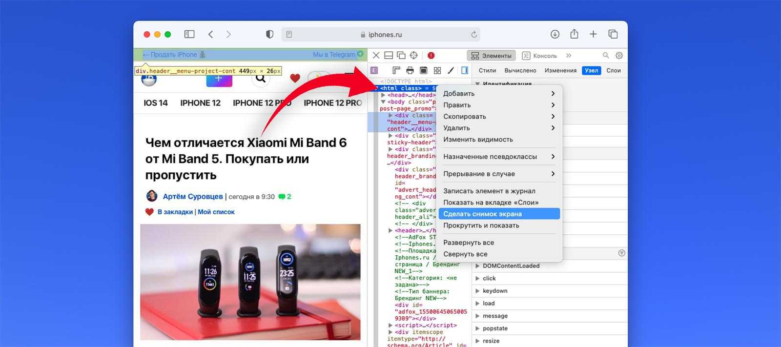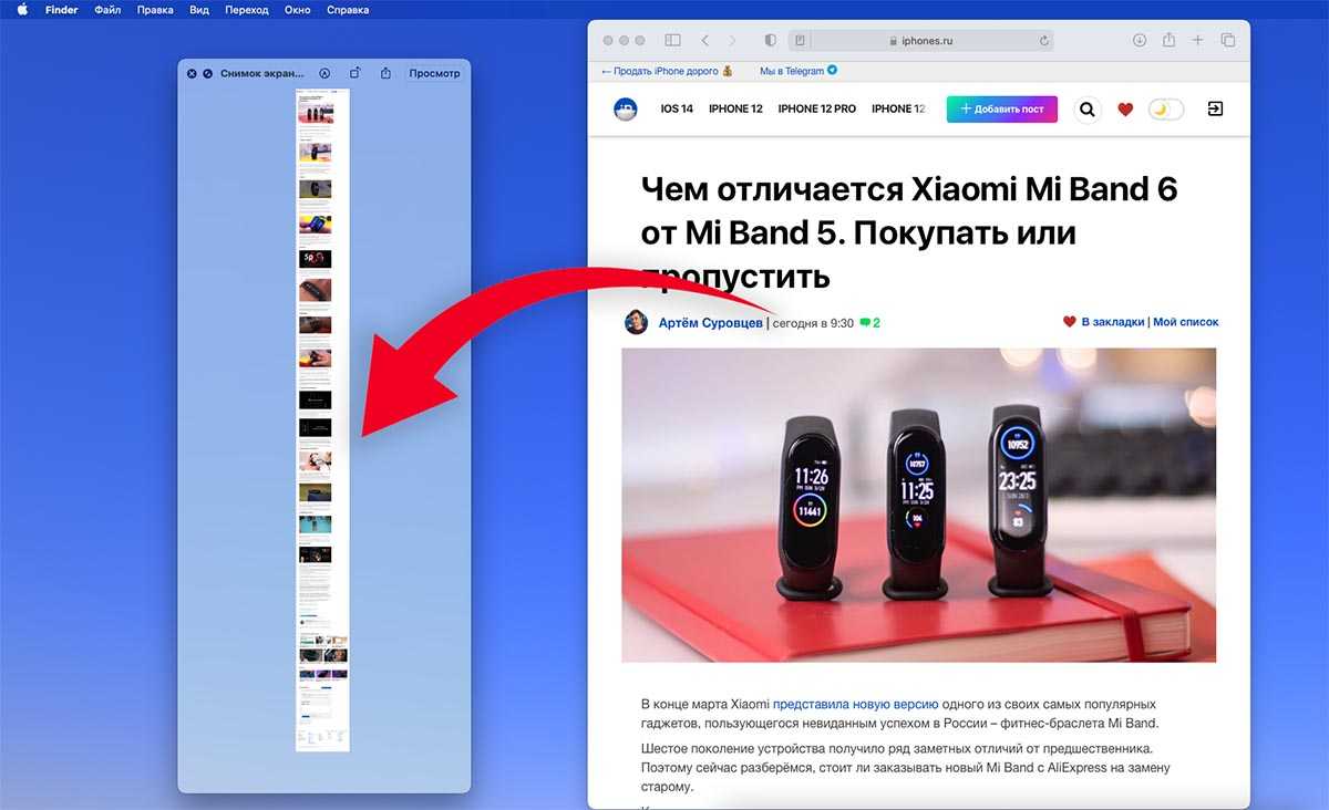 Как сделать длинный скриншот веб-страницы на Mac