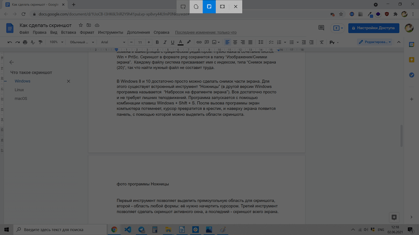 Снимок части экрана в Windows