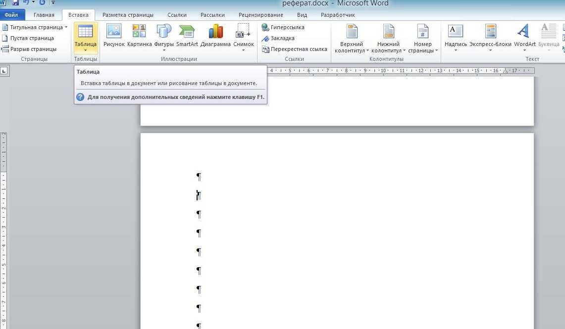- Находим в верхней панели «Вставка» кликаем на нее.
