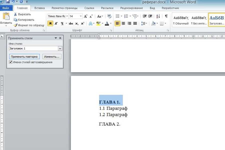 При написании реферата важно правильно оформлять стили заголовков, присваивая каждому названию глав свой стиль в соответствии с уровнем. Например, главы имеют первый уровень, параграфы в главах – второй уровень