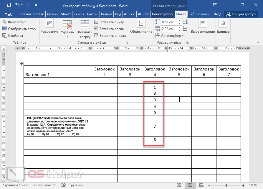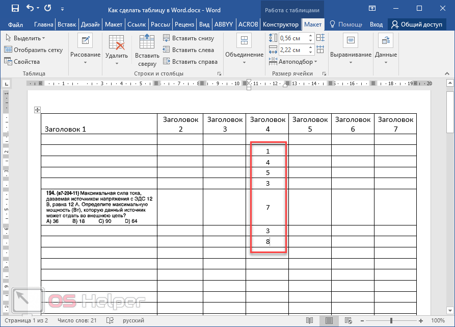 Редактирование таблицы в Word