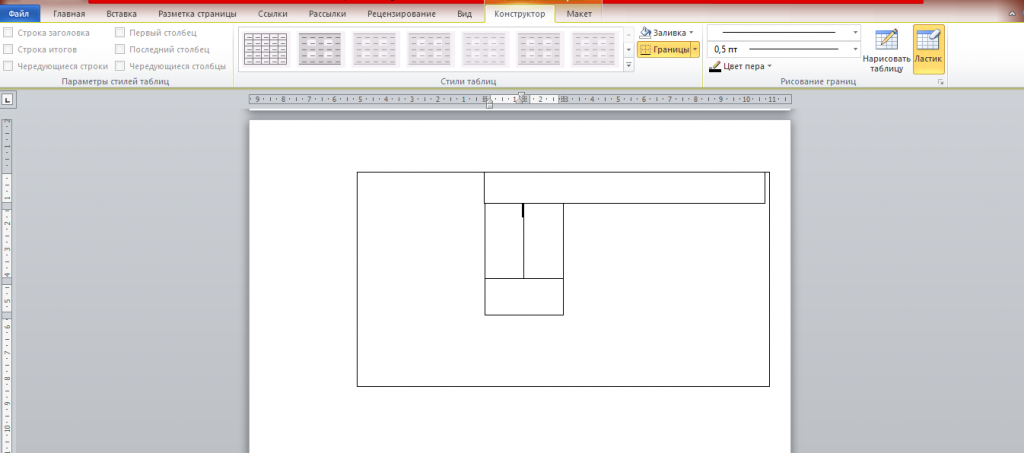 А вот на «Макете» я бы хотел остановиться чуточку подробнее. Здесь у нас изобилие различных функций, которые нам пригодятся. Например,если вы выберите «Ластик», то благодаря ему вы сможете стирать любую линию внутри таблицы, целую ячейку и т.д. Иногда эта вещь просто необходима. Сам частенько ей пользуюсь.