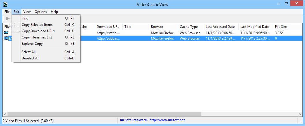 VideoCacheView – еще одна самостоятельная программа, напрямую не взаимодействующая с браузерами, потому не зависящая от их типа. Она имеет принципиально отличный способ действия, не такой как у других программ, описанных выше.