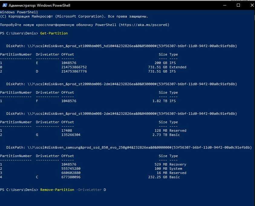 - С незанятым пространством просто повторяем последовательность набора операций, пока весь объем свободного пространства не будет разбит на нужное количество разделов.