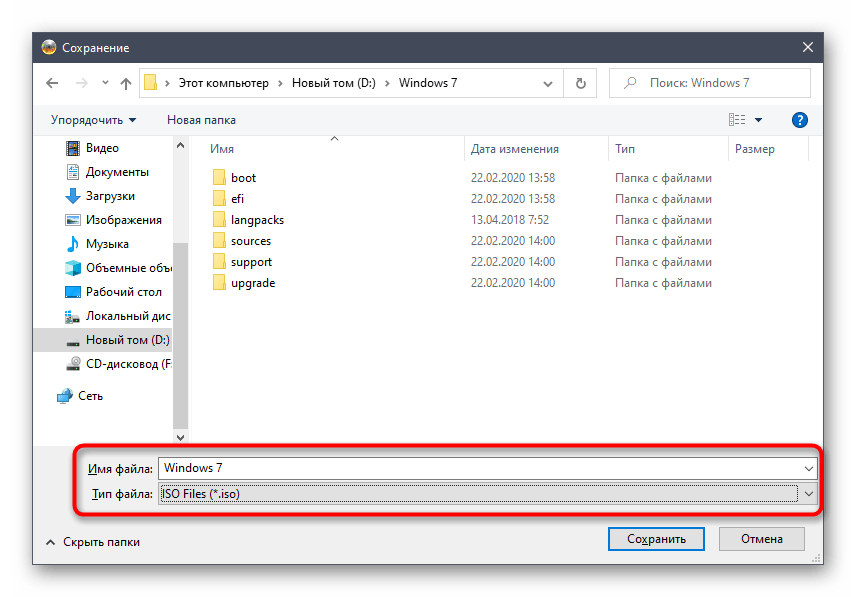 Выберите «Файл образа ISO (*.iso) в нижней части открывшегося окна. в выпадающих опциях сохранения.