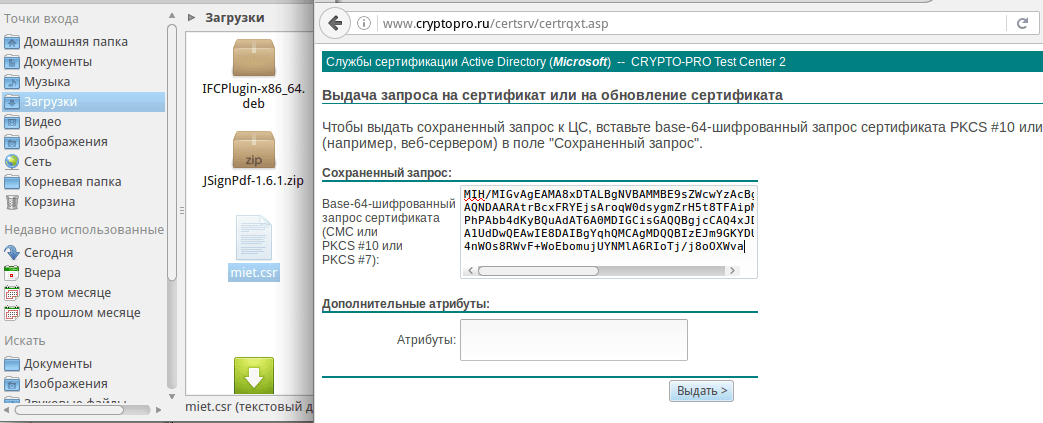 Для создания тестового сертификата есть два пути. Первый путь подразумевает использование КриптоПро ЭЦП Browser plug-in , второй же путь предназначен для того, чтобы без него обойтись.