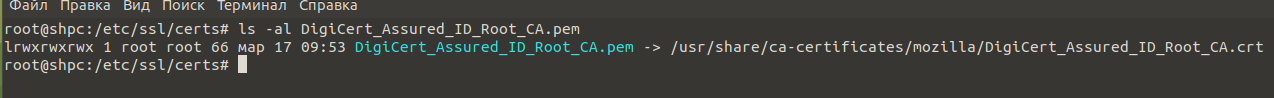 В ОС Ubuntu Linux сертификаты хранятся в каталоге /etc/ssl/cetrs. Причём часть из них — ссылки на другой объект: