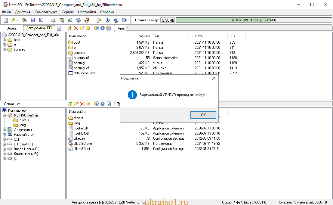 Использование виртуального привода UltraISO