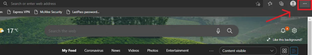 2. Теперь, когда откроется окно Microsoft Edge, найдите значок с многоточием в правом верхнем углу, как показано ниже на снимке экрана, и щелкните его. В противном случае просто нажмите комбинацию клавиш Alt + F , и на экране откроется строка меню.